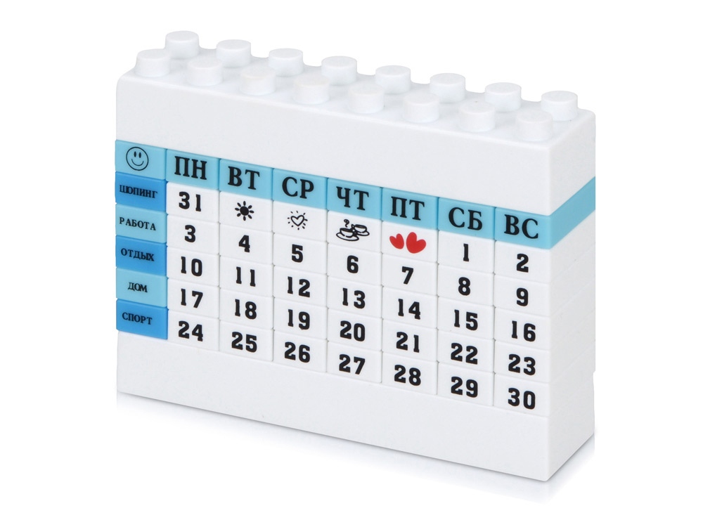 Замечательная и креативная идея для активных и целеустремленных людей. Вечный календарь в виде конструктора подчеркнет индивидуальность обладателя и поможет держать ритм жизни под контролем. Календарь поможет в планировании рабочего и свободного времени, ведь кубики можно собирать так, как вы того хотите, учитывая ваши планы и приоритеты.