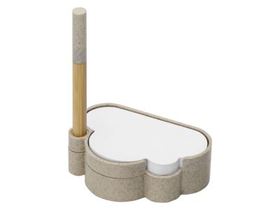 В набор для записей входят удобная подставка в форме облака из переработанной пшеницы, шариковая ручка-стилус из бамбука и переработанной пшеницы, бумага для записей и лист с семенами ромашки. Семена можно посадить как в самой подставке, так и в отдельном горшке. Также в наборе есть инструкция по выращиванию и уходу за ромашкой.