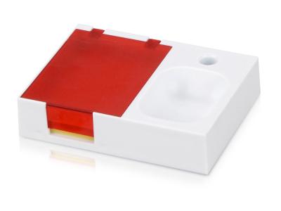 Яркая и удобная поставка под ручку, канцелярские скрепки и бумажный блок (4 х 5 см) превосходно организует ваше рабочее место. Отличный подарок при проведении промо-акций.