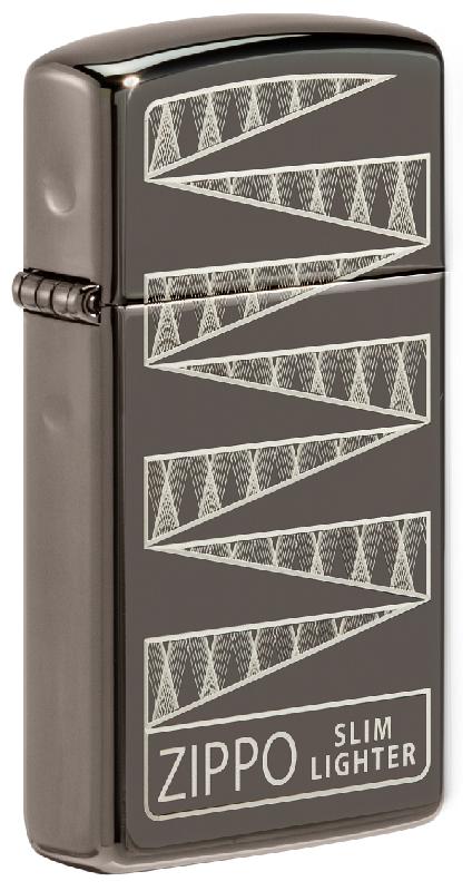 В 1956 году компания Zippo выпустила знаковую инновационную модель. Зажигалка, получившая название Zippo Slim, обладала привычными ветроустойчивыми свойствами, как и зажигалки классической формы, однако ее очертания были заметно заужены. В честь празднования 65-й годовщины с момента появления модели Slim компания Zippo выпустила специальную коллекционную зажигалку. Лестница из треугольников, нанесенная на корпус Black Ice по технологии лазерной гравировки и сверхчеткой детализации, напоминает оригинальную упаковку, в которой выпускались первые зажигалки линейки Slim.