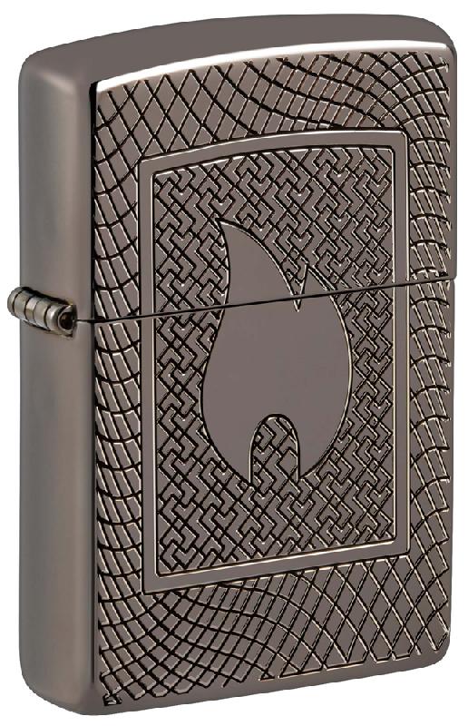 Классический значок пламени Zippo сразу становится центром внимания на этой потрясающей зажигалке Armor® High Polish Black. При помощи универсального процесса глубокого резного оттиска создается гравировка пламени на сложном геометрическом фоне, что придает всей зажигалке невероятный эффект роскошной текстуры.