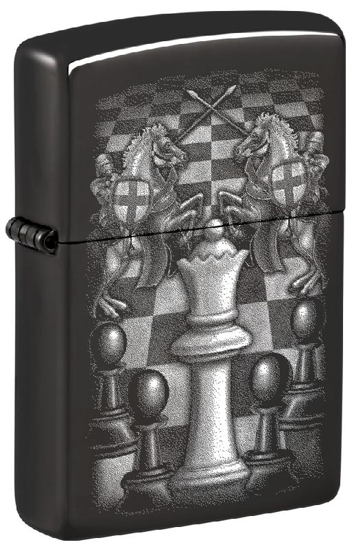 Зажигалка ZIPPO Chess Design с покрытием High Polish Black, латунь/сталь, черная, 38x13x57 мм