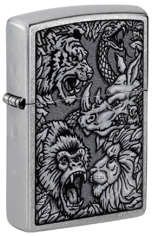 Зажигалка ZIPPO Jungle Design с покрытием Street Chrome, латунь/сталь, серебристая, 38x13x57 мм