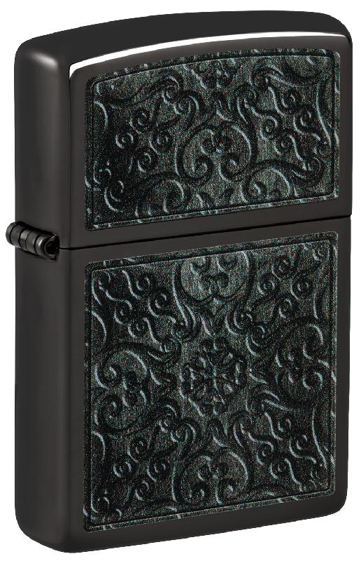 Эта блестящая зажигалка High Polish Black украшена тонким узором в виде замысловатых завитков.