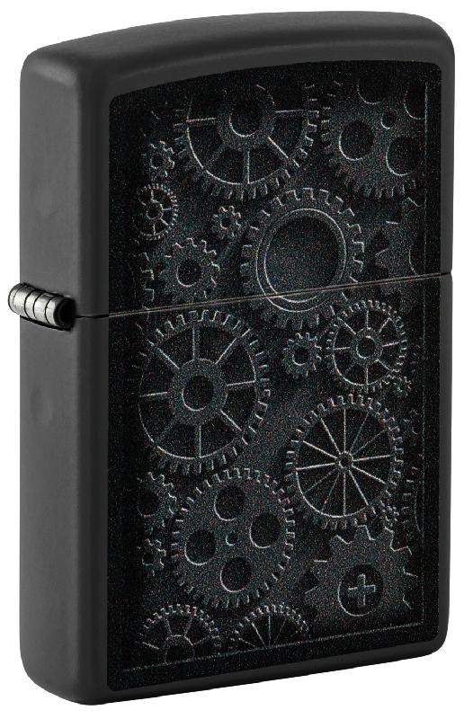 Прочные шестеренки крутятся в вечном движении на поверхности этой классической зажигалки Black Matte в монохромном цветном дизайне.