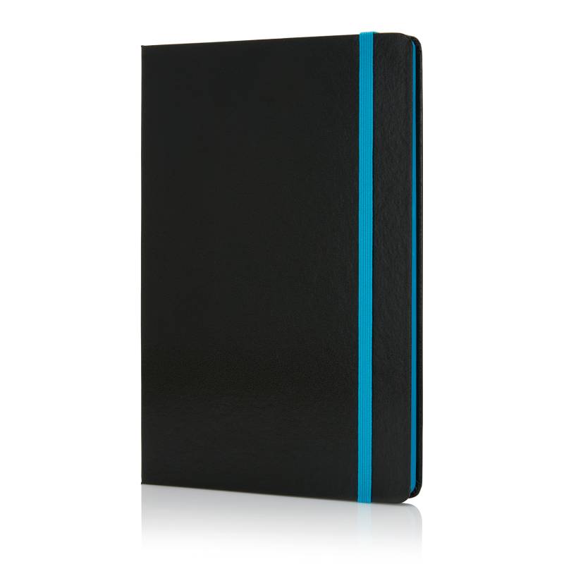 Стильный блокнот формата А5 в твердой обложке. 80 страниц, бумага плотностью 80 г/м2. цветной срез и цвет резинки в тон.