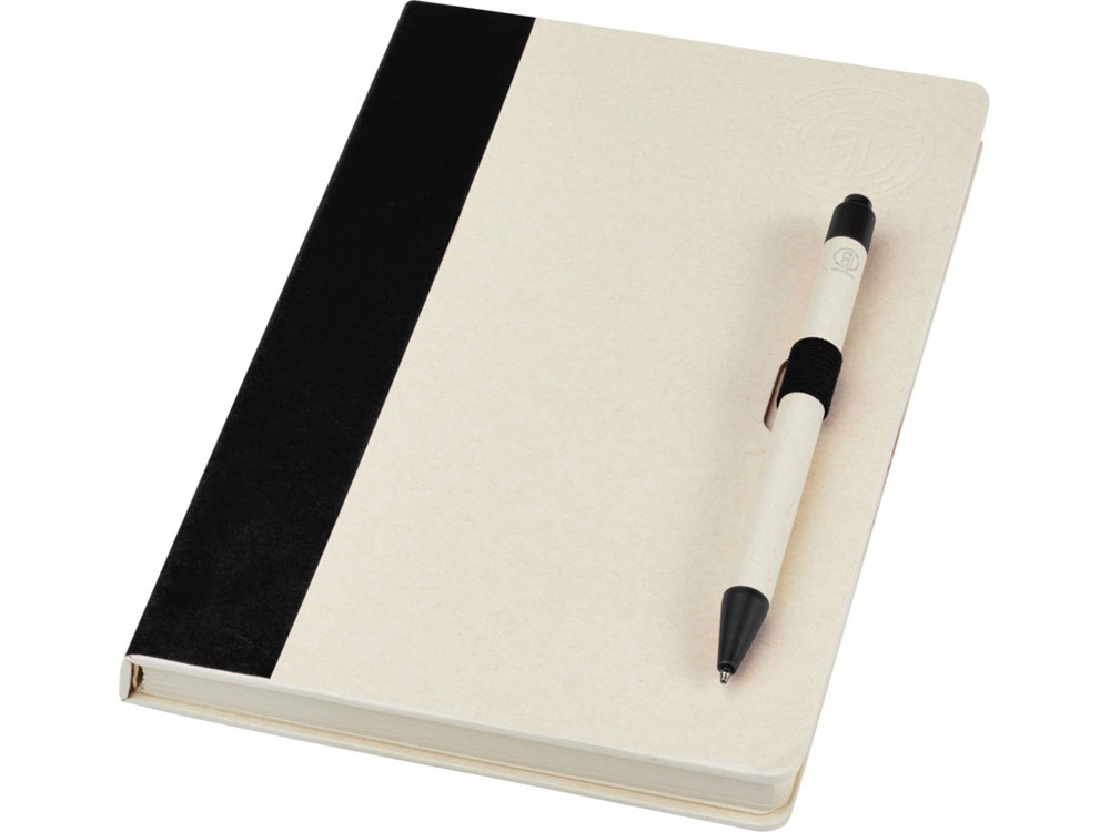 Блокнот A5 Dairy Dream с шариковой ручкой. Блокнот имеет 80 линованных листов (80 г/м²) из переработанных коробок из-под молока (до 70%), цветную спираль для бумаги и петлю для ручки. В петле находится шариковая ручка с кнопочным механизмом, цвет которой соответствует цвету блокнота. Корпус ручки также изготовлен из переработанных коробок из-под молока, а кнопка, зажим и наконечник изготовлены из цветного PLA-пластика. Внутри ручки имеется черный стержень. Картонные коробки из-под молока собираются, сортируются, перерабатываются и превращаются в бумагу, таким образом действительно превращая мусор во что-то полезное.