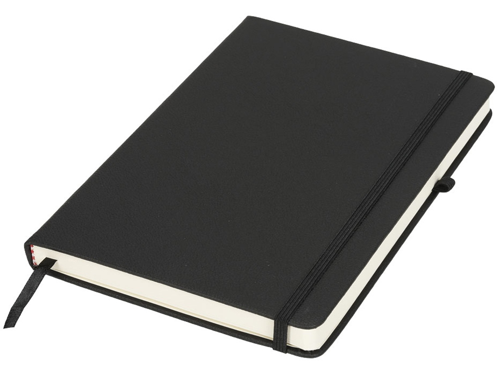 Блокнот Rivista среднего размера. Блокнот Rivista отличается стильным современным дизайном с высококачественной обложкой, идеально подходящей для нанесения логотипа и информации вашей компании. Предлагаются современные цвета. Также предусмотрена эластичная застежка, держатель для ручки, лента-закладка и внутренний кармашек на задней стороне обложки. Содержит 128 листов линованной бумаги (70 г/м²) кремового цвета. ПУ.