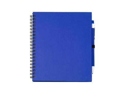 Блокнот на спирали с простыми листами и держателем для ручек. Твердая обложка и ручка из переработанного картона. 70 листов.