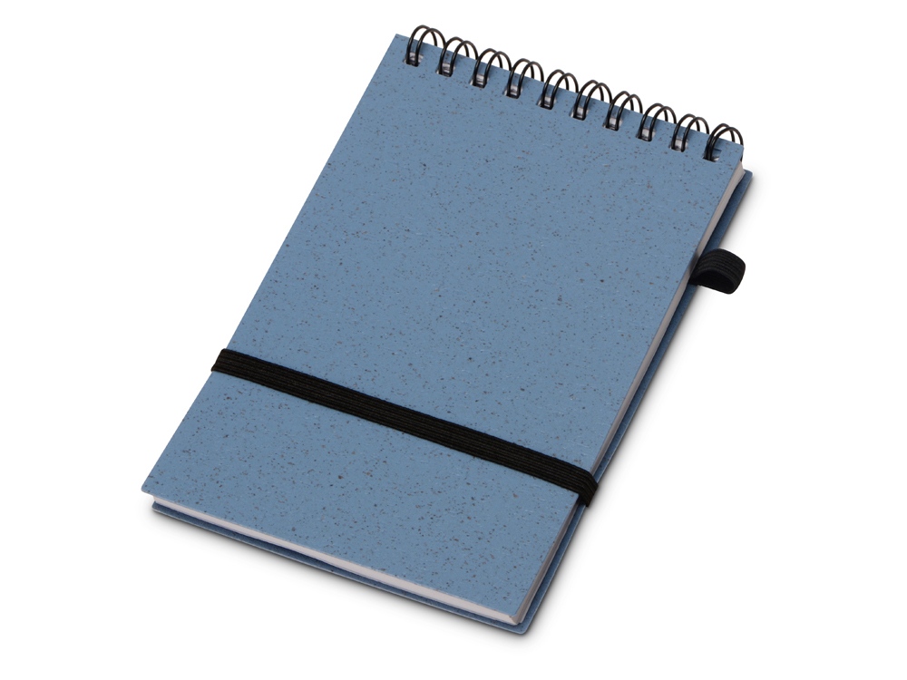 Блокнот с обложкой из переработанной пшеницы и пластика. Блок состоит из 60 листов переработанной бумаги белого цвета. Крепление - пружина. Дополнен петлей для ручки и горизонтальной резинкой.