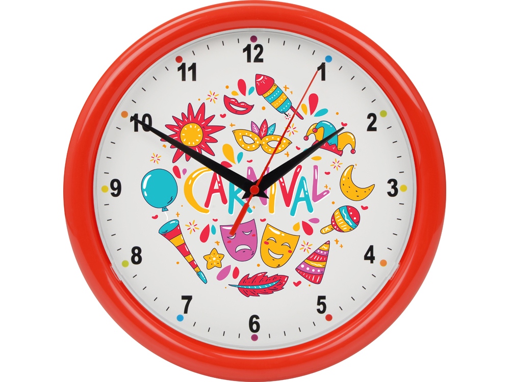 Часы предназначены для вставки циферблата (диаметром 205 мм) с печатью по индивидуальному дизайну. Часы поставляются в разобранном виде. В состав комплекта входит: корпус с механизмом, крышка, стрелки и коробка. Часовая и минутная стрелки - черного цвета, секундная - красного цвета.