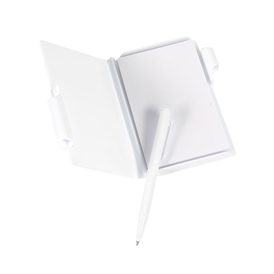 Блокнот для записей с авторучкой, белый, 10,5х7,9х1,1 см, пластик, тампопечать