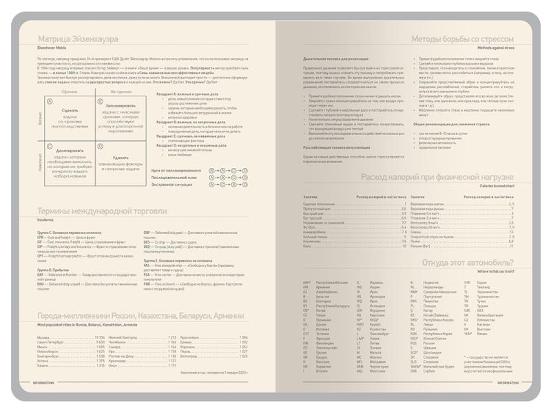 Элегантный датированный ежедневник Megapolis Color от Bruno Visconti идеально подходит для организации рабочего дня и ведения важных записей. Обложка из искусственной кожи с приятным на ощупь покрытием Soft Touch и обрез в тон создают гармоничный образ. Внутри – блок из бежевой бумаги плотностью 70 г/кв.м с разделами для планирования, календарем на 2026-2027 год и полезной справочной информацией. Для удобства навигации предусмотрена закладка-ляссе шириной 7 мм в цвет обложки.