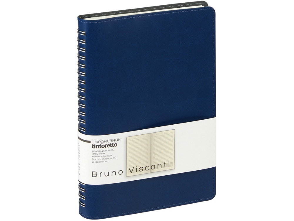 Недатированный ежедневник формата А5 Tintoretto ТМ Bruno Visconti - практичное решение для тех, кто любит ежедневники на пружине. Полускрытый гребень позволяет держать ежедневник открытым на столе и комфортно вести записи. 272 страницы блока произведены из превосходной бежевой бумаги плотностью 70 г/кв.м, а неброская линовка каждой страницы позволяет не отвлекаться на лишние детали. Гибкую обложку из искусственной кожи украшает отстрочка декоративной нитью по краю.