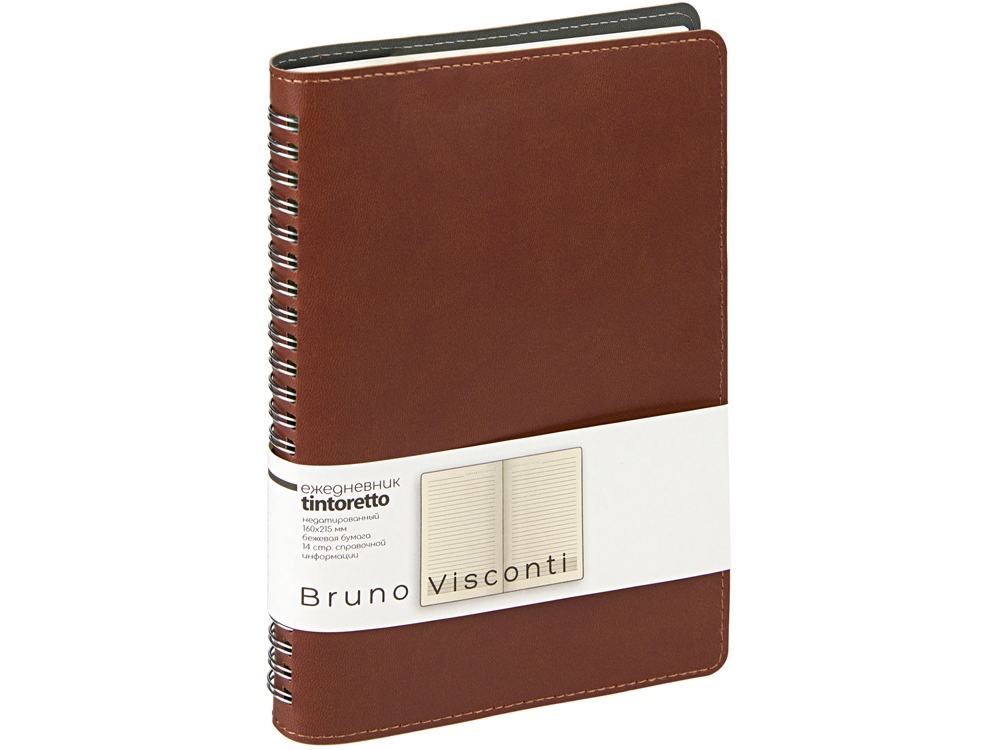 Недатированный ежедневник формата А5 Tintoretto ТМ Bruno Visconti - практичное решение для тех, кто любит ежедневники на пружине. Полускрытый гребень позволяет держать ежедневник открытым на столе и комфортно вести записи. 272 страницы блока произведены из превосходной бежевой бумаги плотностью 70 г/кв.м, а неброская линовка каждой страницы позволяет не отвлекаться на лишние детали. Гибкую обложку из искусственной кожи украшает отстрочка декоративной нитью по краю.