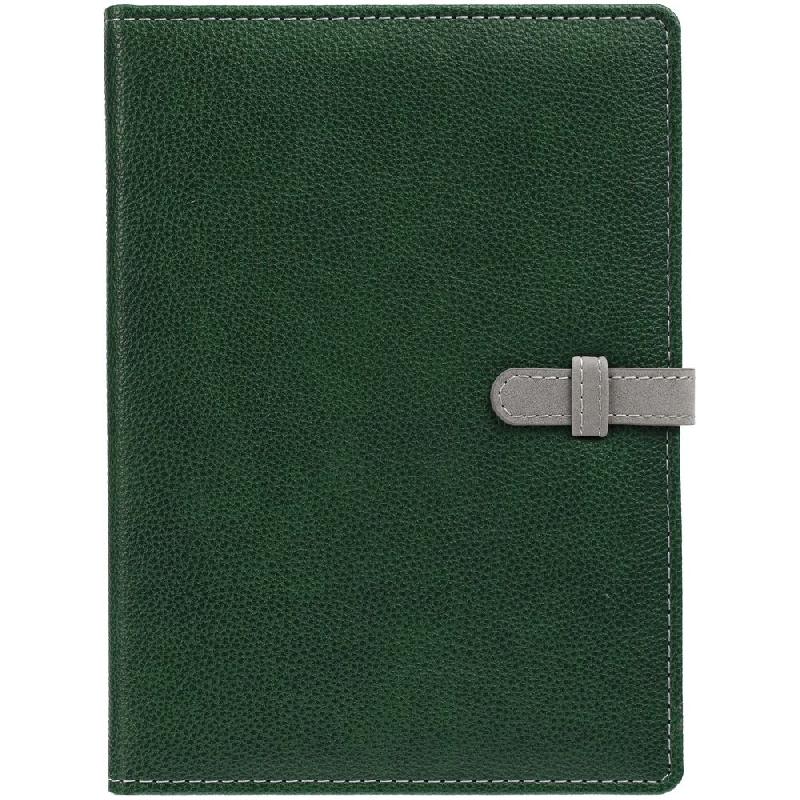 Ежедневник в мягкой суперобложке, выполнен из материала La Fite, зеленый FF, дополнен ляссе серого цвета.