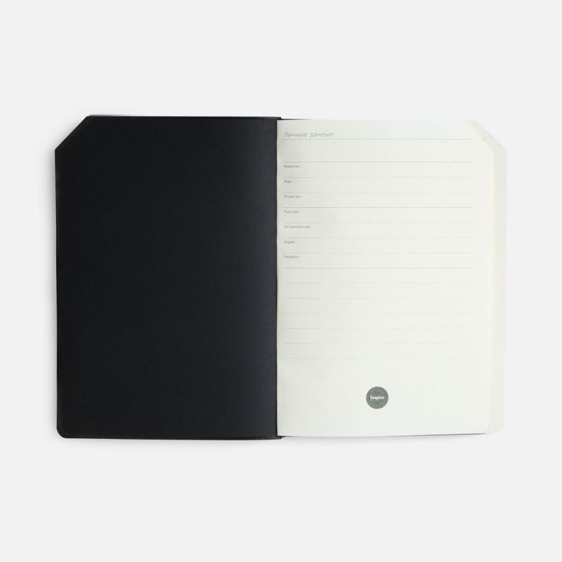 Ежедневник с гибкой обложкой, выполнен из материала Espresso, дополнен ляссе черного цвета и хлястиком на кнопке.