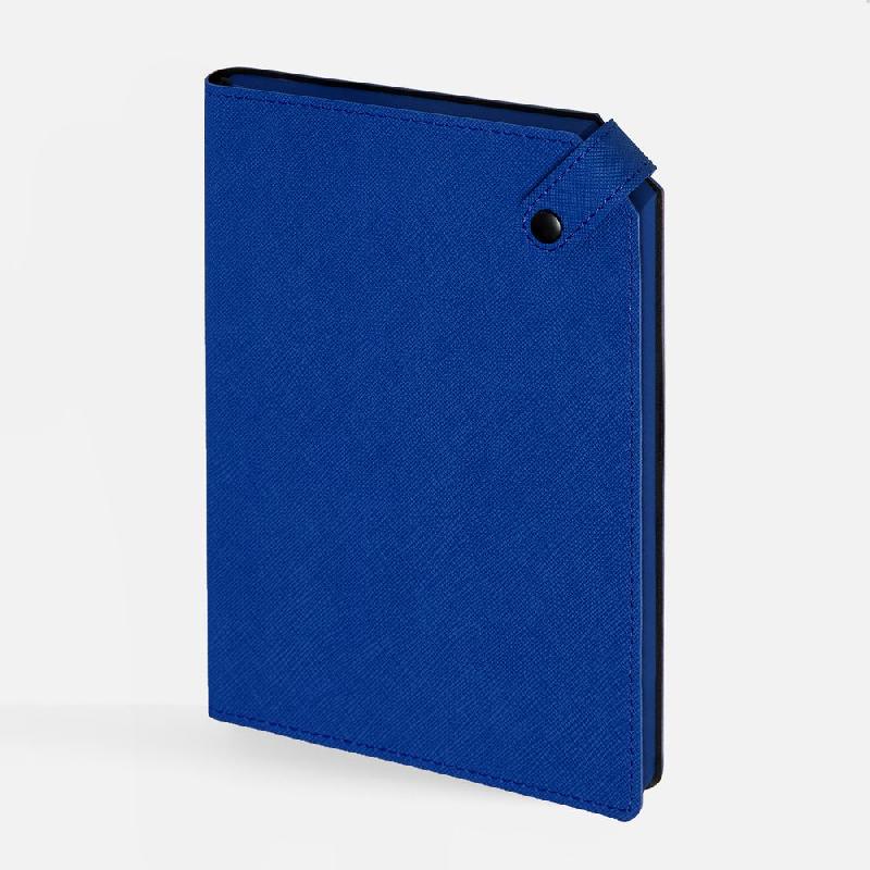 Ежедневник с гибкой обложкой, выполнен из материала Espresso, дополнен ляссе черного цвета и хлястиком на кнопке.