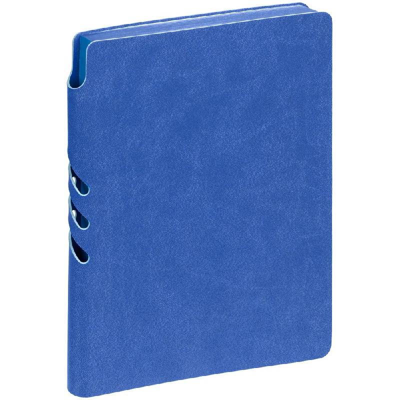 Гибкая обложка ежедневника выполнена из материала Latte, синий НН. Внутри корешка — специальное место для крепления ручки размером до 15х0,9 см.