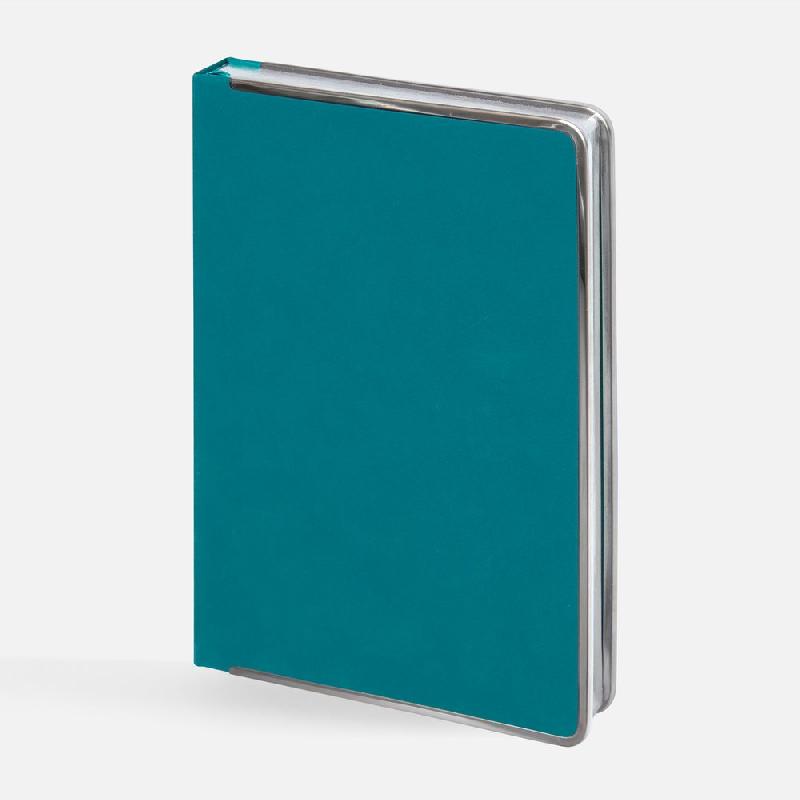 Ежедневник с твердой обложкой и серебристым обрезом блока. Выполнен из материала Nubuck, красный РР, дополнен красным ляссе и металлическими рамками с двух сторон обложки.