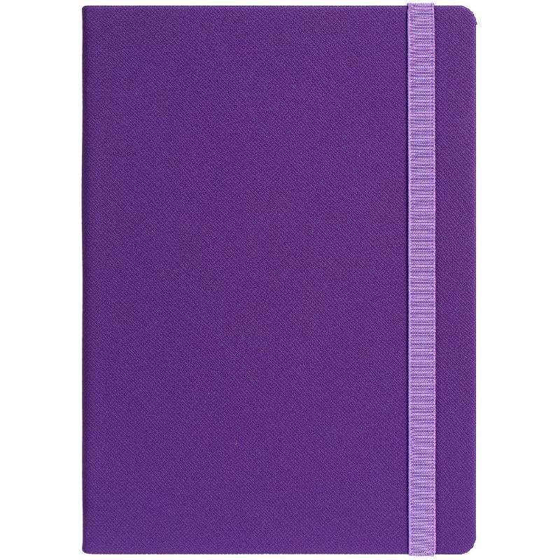 Ежедневник с твердой обложкой выполнен из материала Nice Touch, фиолетовый UU, и дополнен резинкой шириной 1 см и ляссе сиреневого цвета.