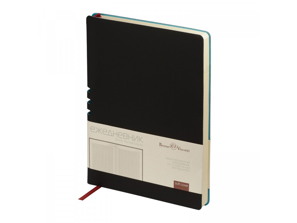 Этот ежедневник вдохновлен солнечными днями и томными ночами Мадрида. И как этот великий город он лишь намекает снаружи на свои тайны. Так, вырубка на спинке – это удобная петля для ручки. Пользоваться этим секретом – одно удовольствие. Недатированный ежедневник Madrid от Bruno Visconti исполнен в модном зефирном мятном цвете. Гибкая обложка с покрытием Soft-Touch. Бордовое ляссе выгодно прекрасно сочетается со скругленной обложкой и бежевым блоком. Для изготовления данного ежедневника использована бумага плотность 70 г/м. Справочная информация на 17 страницах. Ежедневник упакован в картонный полукороб и термопленку.