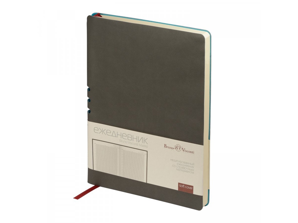 Этот ежедневник вдохновлен солнечными днями и томными ночами Мадрида. И как этот великий город он лишь намекает снаружи на свои тайны. Так, вырубка на спинке – это удобная петля для ручки. Пользоваться этим секретом – одно удовольствие. Недатированный ежедневник Madrid от Bruno Visconti исполнен в модном зефирном мятном цвете. Гибкая обложка с покрытием Soft-Touch. Бордовое ляссе выгодно прекрасно сочетается со скругленной обложкой и бежевым блоком. Для изготовления данного ежедневника использована бумага плотность 70 г/м. Справочная информация на 17 страницах. Ежедневник упакован в картонный полукороб и термопленку.