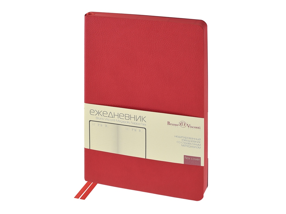 Обложка недатированного ежедневника Megapolis Nappa Flex ТМ Bruno Visconti произведена из искусственной кожи без применения переплетного картона, благодаря чему он легче и изящнее классических. Его можно свернуть в трубочку, обложка и блок не пострадают. При этом, для ежедневника формата А5 доступны те же опции, что и для любых других ежедневников — окрашенный обрез, крупнозернистая фактура искусственной кожи обложки, двойное ляссе 7 мм.