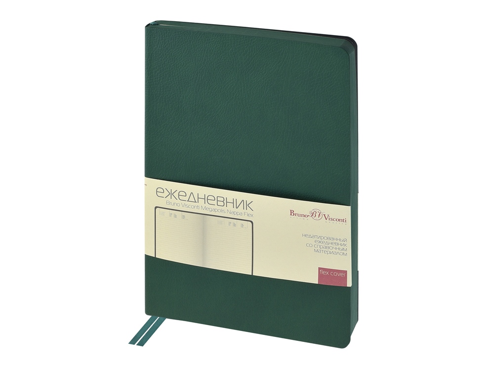 Обложка недатированного ежедневника Megapolis Nappa Flex ТМ Bruno Visconti произведена из искусственной кожи без применения переплетного картона, благодаря чему он легче и изящнее классических. Его можно свернуть в трубочку, обложка и блок не пострадают. При этом, для ежедневника формата А5 доступны те же опции, что и для любых других ежедневников — окрашенный обрез, крупнозернистая фактура искусственной кожи обложки, двойное ляссе 7 мм.