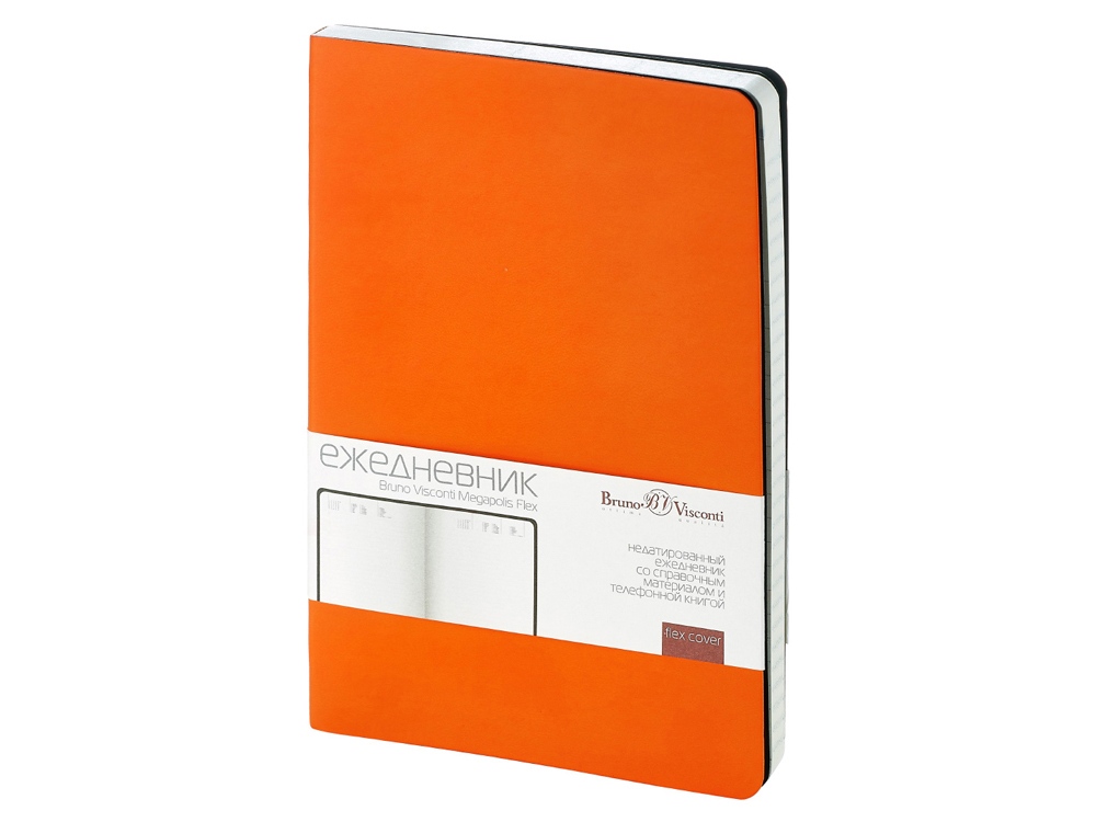 Недатированный ежедневник Megapolis Flex от бренда Bruno Visconti - это качественный корпоративный подарок по выгодной цене, произведенный специально под персонализацию. Представлен в универсальном формате А5 и состоит из 272 страниц. Элегантная закругленная flex обложка из гладкого кожзама имеет гибкую конструкцию и приятна на ощупь. А интегральный переплет позволяет сэкономить место в деловой сумке или портфеле – ежедневник можно просто свернуть в трубку или согнуть пополам.