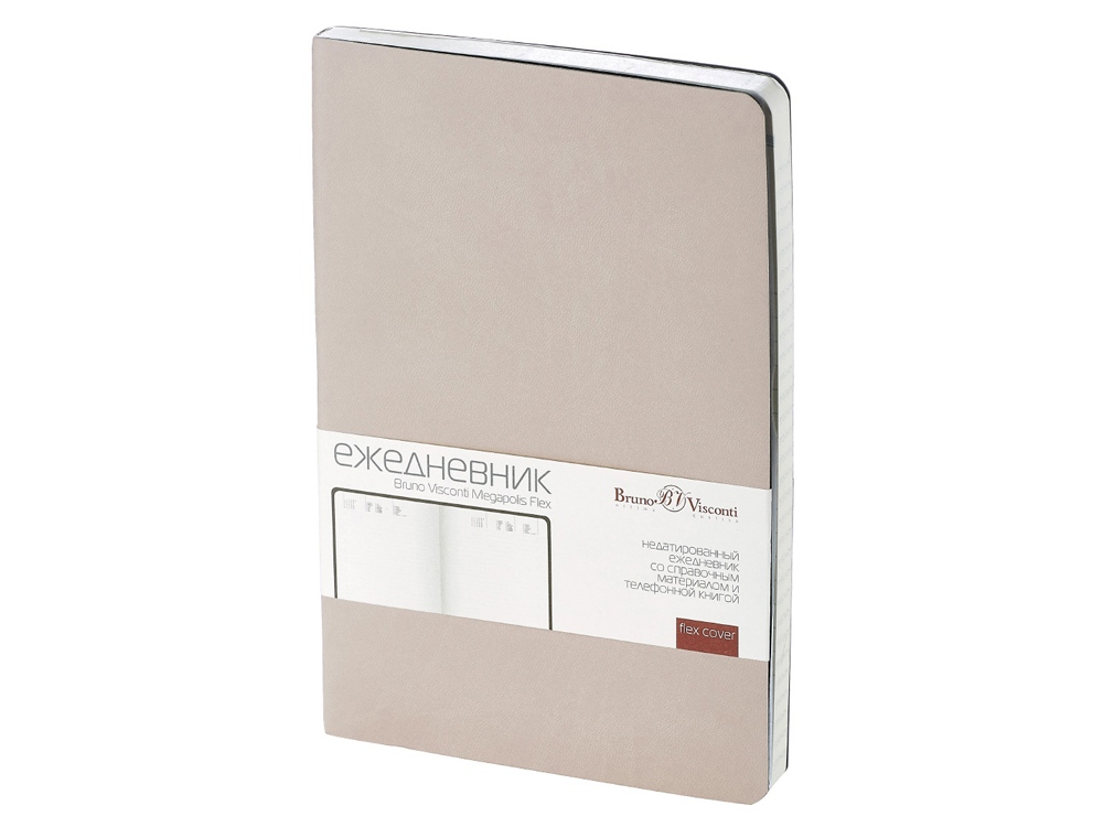 Недатированный ежедневник Megapolis Flex от бренда Bruno Visconti - это качественный корпоративный подарок по выгодной цене, произведенный специально под персонализацию. Представлен в универсальном формате А5 и состоит из 272 страниц. Элегантная закругленная flex обложка из гладкого кожзама имеет гибкую конструкцию и приятна на ощупь. А интегральный переплет позволяет сэкономить место в деловой сумке или портфеле – ежедневник можно просто свернуть в трубку или согнуть пополам.