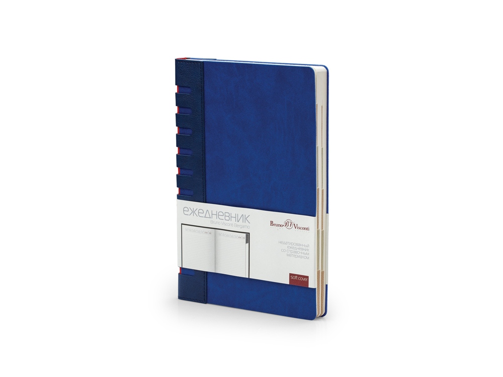 Оригинальная модель ежедневника с необычным накладным корешком с вырубкой и контрастной подложкой. Обложка готова к персонализации и выполнена из гибкого материала.
