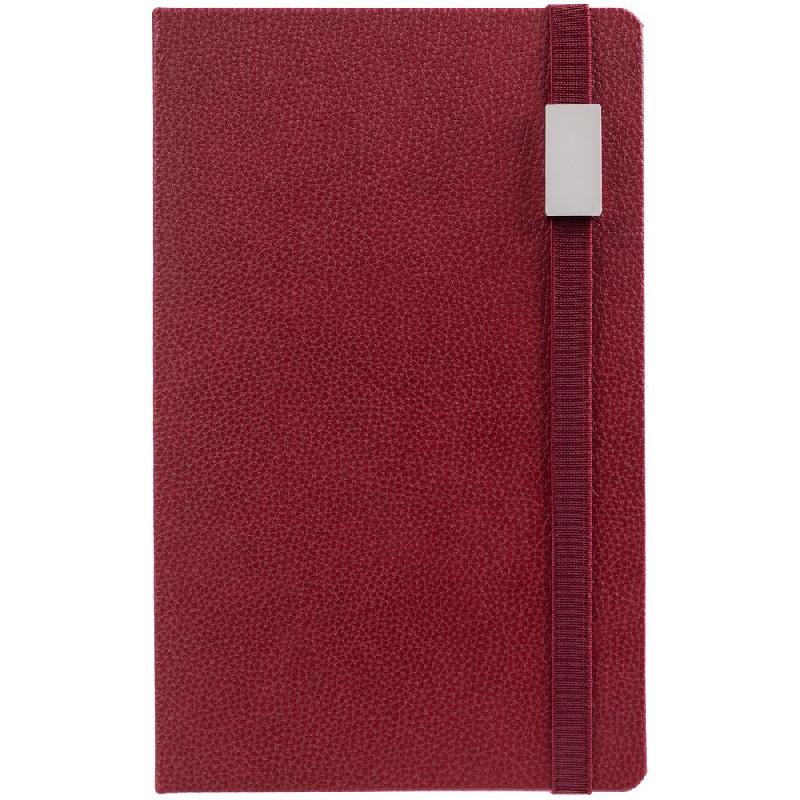 Зауженный ежедневник с прямоугольным металлическим шильдом на резинке.