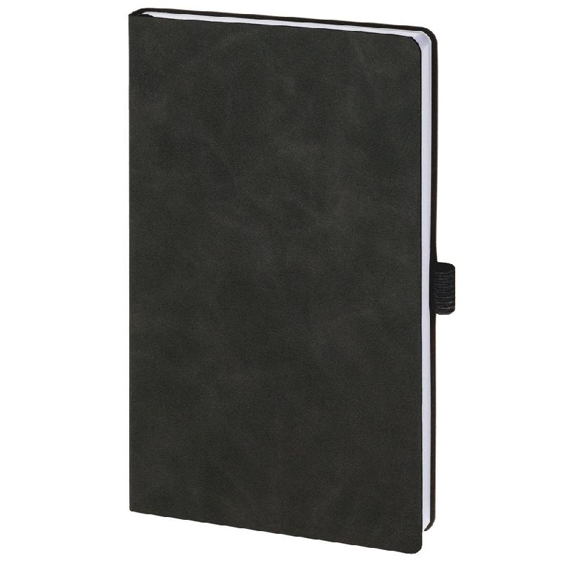 Ежедневник с гибкой обложкой, выполнен из материала Nubuck Touch, зеленый VV, дополнен ляссе и петлей-резинкой для ручки черного цвета.
