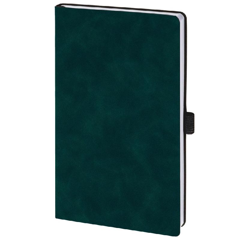 Ежедневник с гибкой обложкой, выполнен из материала Nubuck Touch, зеленый VV, дополнен ляссе и петлей-резинкой для ручки черного цвета.