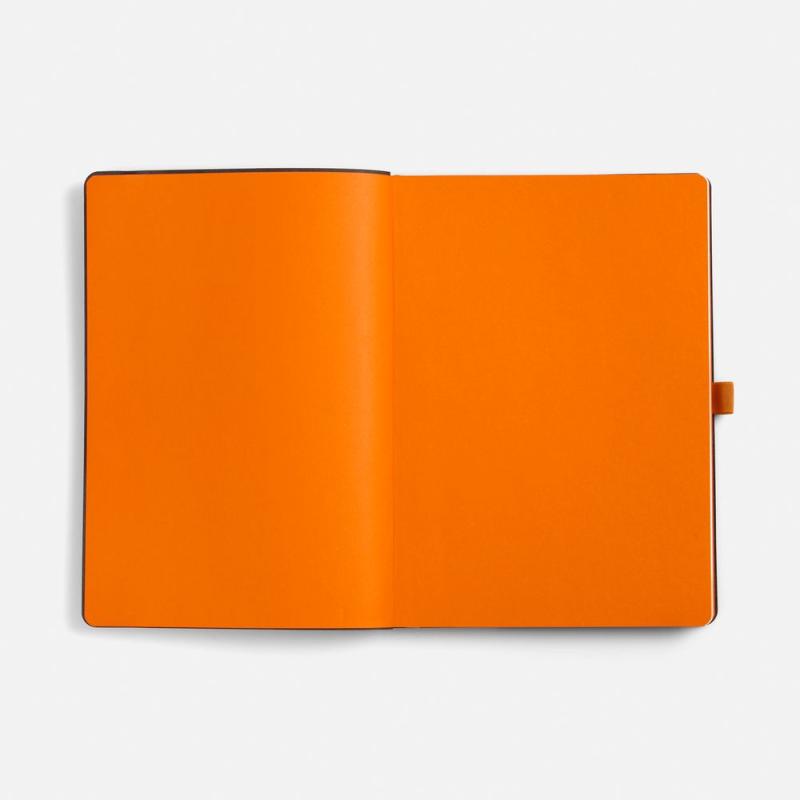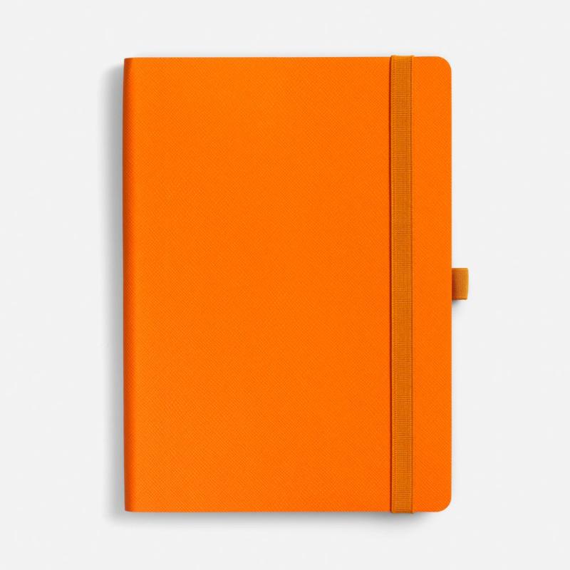 Ежедневник с гибкой обложкой, выполнен из материала Nice Touch, оранжевый ОО, дополнен цветными ляссе и петлей-резинкой для ручки.