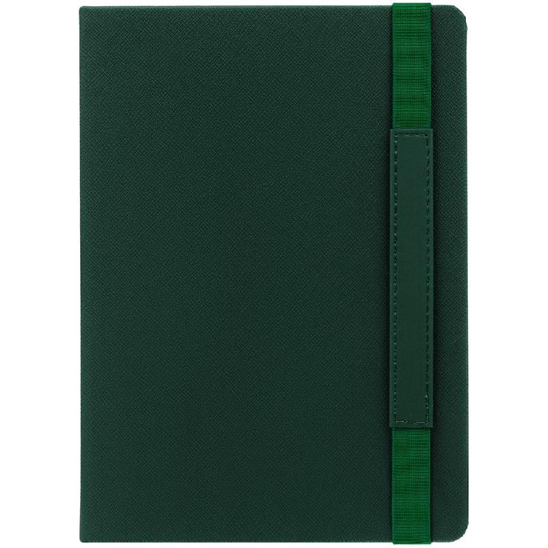 Ежедневник с твердой обложкой, выполнен из материала Nice Touch, голубой JJ, дополнен резинкой с шильдой из материала Soft Touch Ultra и ляссе в цвет обложки.