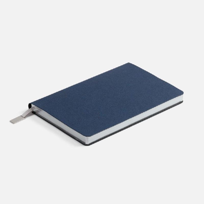Ежедневник с гибкой обложкой, выполнен из материала Petrus, голубой JJ, дополнен серым ляссе с металлическим шильдиком.