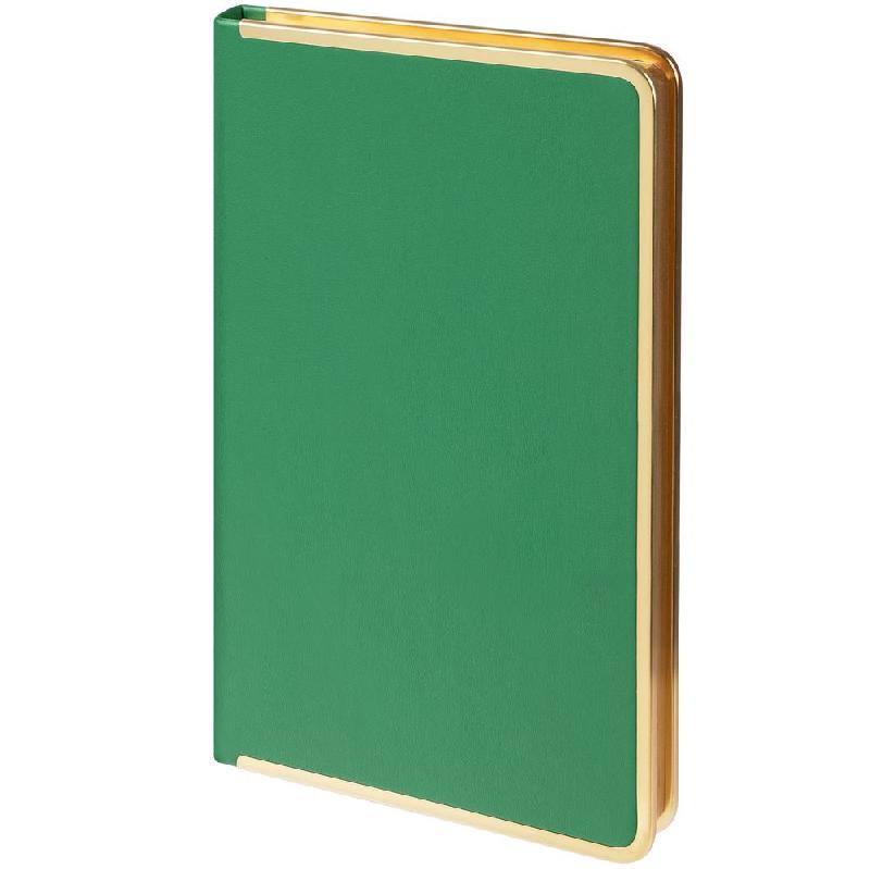 Изящный ежедневник с зауженным блоком и стильными деталями — металлической окантовкой на обложке и металлизированным обрезом.