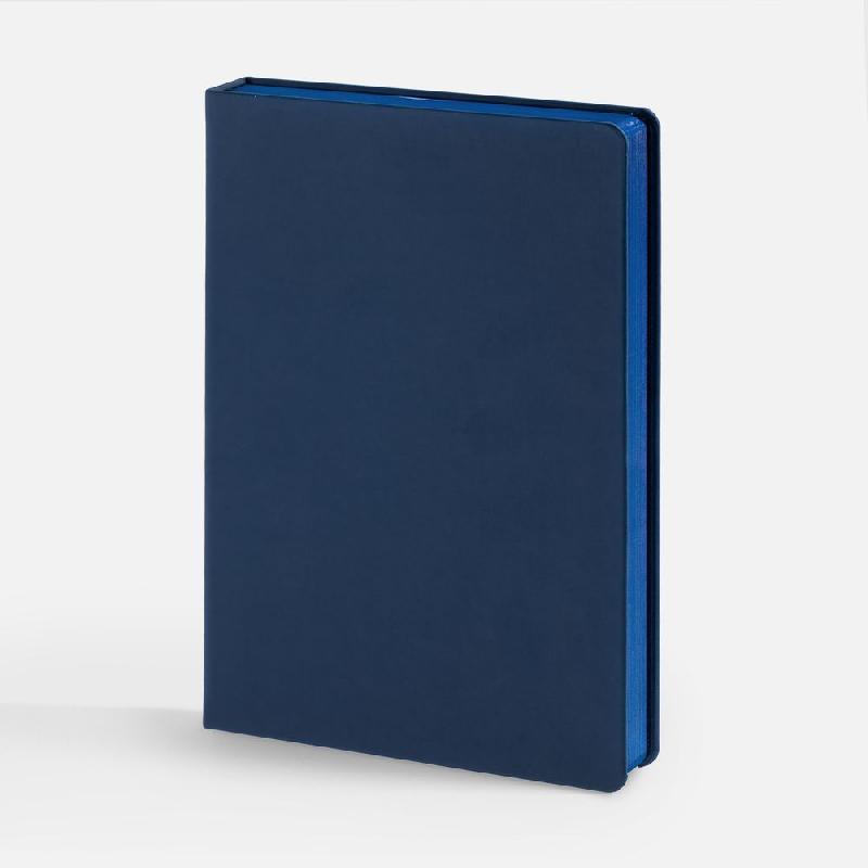Ежедневник с твердой обложкой и тонированным обрезом, выполнен из материала Soft Touch, черный АА, дополнен ляссе в цвет обложки.
