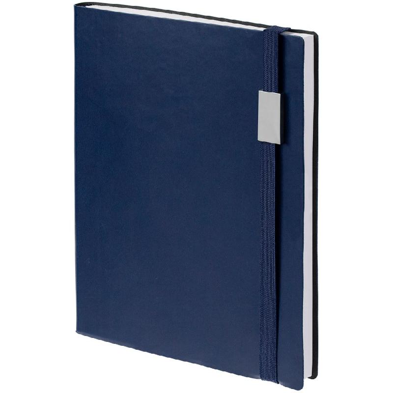 Ежедневник с гибкой обложкой, выполнен из материала Latte, голубой JJ, дополнен резинкой шириной 1 см с металлическим шильдом, капталом и ляссе голубого цвета.
