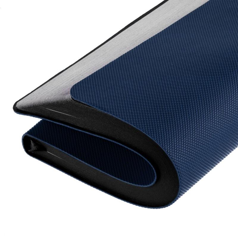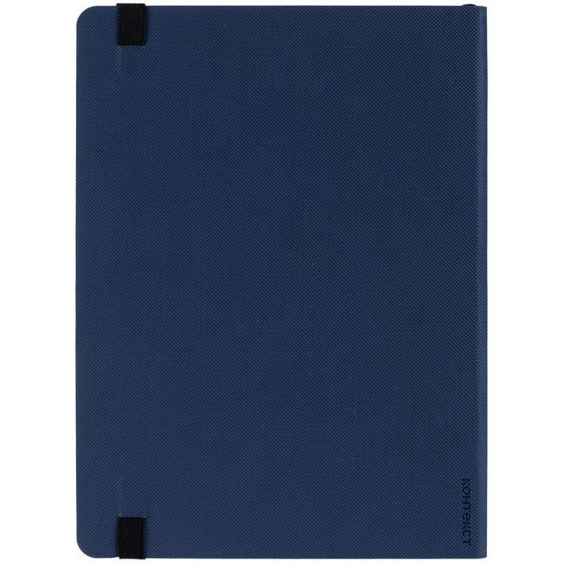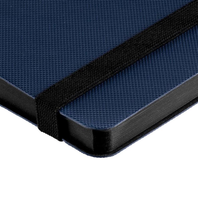 Еженедельник в гибкой обложке выполнен из материала Canyon, темно-синий ХХ, дополнен резинкой и ляссе черного цвета.