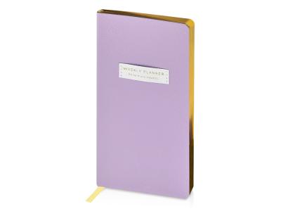 Внутри — недатированный блок формата А6 (84×160 мм) на бежевой бумаге 80 г/м². Книжный переплёт хорошо раскрывается, а скруглённые углы одновременно придают еженедельнику премиальный вид и защищают края при носке. Ляссе‑закладка выполнена в цвет обложки и помогает быстро находить нужную страницу.