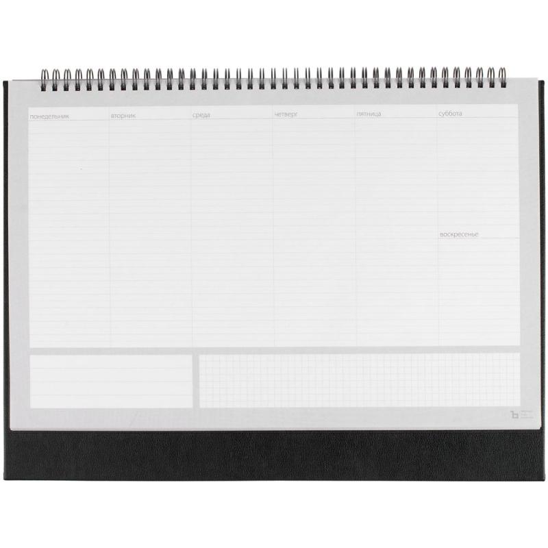 Настольный недатированный планер на открытой пружине. Обложка из белого мелованного картона, подложка из плотного картона в материале Petrus, черный АА.