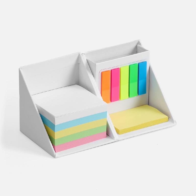 9х9х9 см; блок бумаги 7,5х7,5 см; блок листов с клейкой лентой 7,5х5 см; пластиковые закладки 4,5х1,2 см