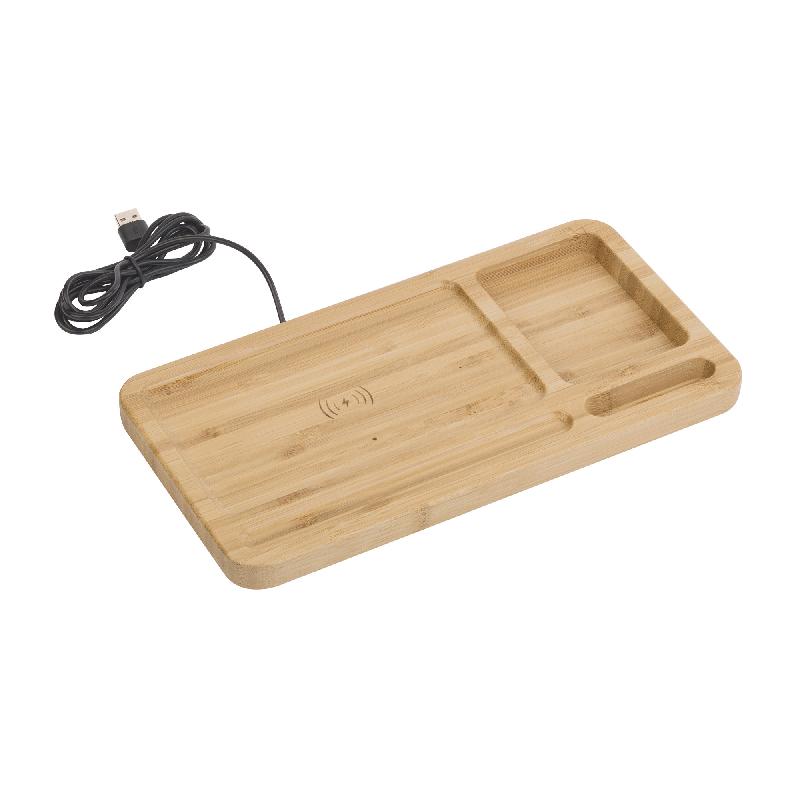 Настольный органайзер "Woodstock" с беспроводным зарядным устройством, бамбук