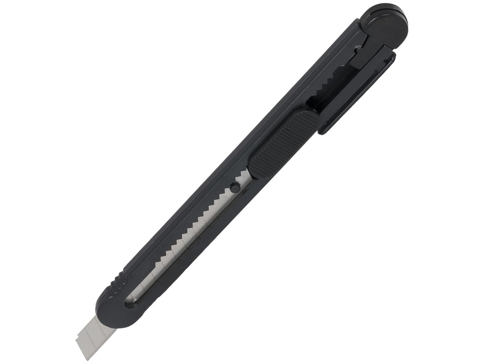 Универсальный нож Sharpy со сменным лезвием. Универсальный нож с выдвижным сменным лезвием 80x9 мм, с 12 сегментами. Встроенный инструмент для замены лезвия и зажим для крепления к карману. ПС-пластик.