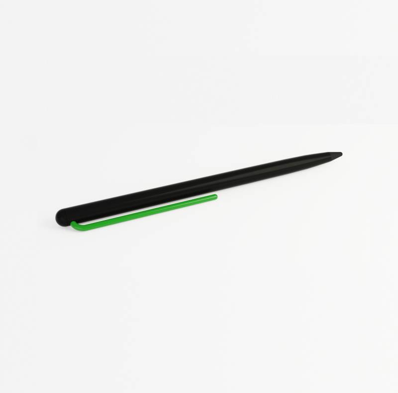 Инновационный, совершенно необычный карандаш с цельным алюминиевым матовым корпусом черного цвета, ярко-зеленым клипом и пишущим наконечником из материала GrafeeX. GrafeeX - это запатентованный инновационный материал, полученный в результате спекания мелких частиц графита при высоких температурах. То есть он пишет, как обычный графитовый карандаш, но из-за высокой плотности материала крайне экономно расходуется, и его хватает очень надолго. Карандаш вкладывается в элегантный темно-серый чехол с контрастной прострочкой в цвет клипа, сшитый вручную из рециклированной кожи. GrafeeX станет идеальным помощником в повседневной жизни: для заметок, для набросков или просто для записи идей на бумаге. Длина изделия: 15,2 см. Диаметр изделия: 0,8 см. Вес изделия: 26 гр