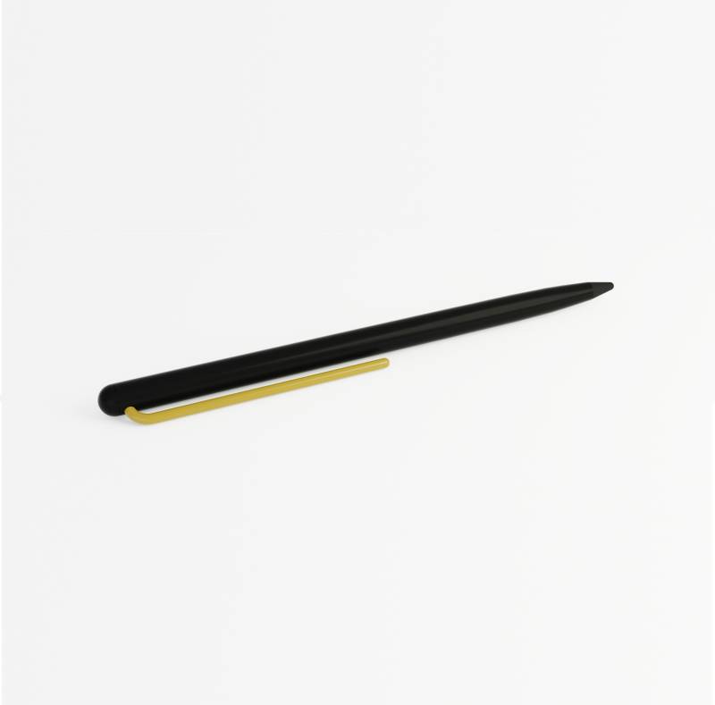 Инновационный, совершенно необычный карандаш с цельным алюминиевым матовым корпусом черного цвета, ярко-желтым клипом и пишущим наконечником из материала GrafeeX. GrafeeX - это запатентованный инновационный материал, полученный в результате спекания мелких частиц графита при высоких температурах. То есть он пишет, как обычный графитовый карандаш, но из-за высокой плотности материала крайне экономно расходуется, и его хватает очень надолго. Карандаш вкладывается в элегантный темно-серый чехол с контрастной прострочкой в цвет клипа, сшитый вручную из рециклированной кожи. GrafeeX станет идеальным помощником в повседневной жизни: для заметок, для набросков или просто для записи идей на бумаге. Длина изделия: 15,2 см. Диаметр изделия: 0,8 см. Вес изделия: 26 гр