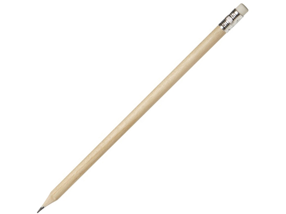 Карандаш с ластиком. Карандаш изготовлен из тополевой древесины, ластик — из графита, а обойма — из алюминия. Дерево.
